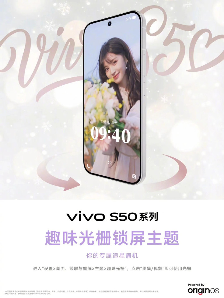 除了锁屏的巧思,S50系列还深入到了系统UI的每一个角落。OriginOS系统提供了深度的自定义选项,从桌面组件到图标风格,都能与你的手机配色和个人喜好完美匹配。vivo甚至为粉丝准备了全套的“追星素材包”,包括定制的主题、动态壁纸以及桌面小组件,让用户可以一键把对自己偶像的喜爱“装修”进手机里。这种软硬结合的定制化体验,在目前的手机市场上可以说是独树一帜。